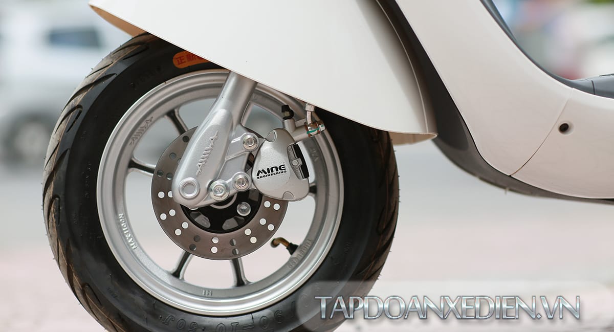 Xe điện Aima P sử dụng lốp không săm có thể tự giữ không khí bên trong mà không cần đến săm. Phanh đĩa khá đầm máy giúp người điều khiển xe an toàn hơn trên mọi địa hình. Động cơ với công suất 1500W, tăng khả năng quãng đường di chuyển trong một lần sạc lên đến 70 – 80km, tốc độ tối đa từ 45 – 55km/h. Hệ thống chắn bùn khá hoàn hảo, dài hơn giúp bạn hoàn toàn yên tâm không lo bị bắn bẩn khi đi trong thời tiết mưa gió.