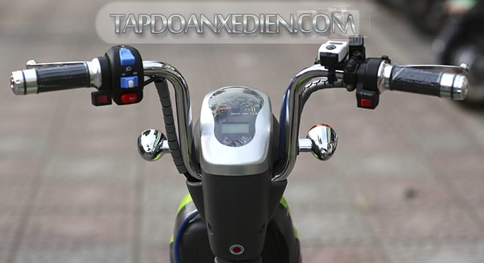 Ghi đông cong, vồng xuống, kho đi trên cung đường xấu, một phần phản lực tay cầm ghi đông đã tản ra, triệt tiêu, giúp quý khách hàng ổn định tay lái, chống trường hợp lạc tay lái mà xảy ra va chạm.