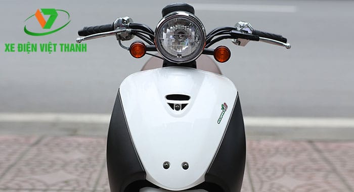 Ghi đông thanh mảnh cong cuống tạo các đường nét mềm mại. Đèn xe gắn liền với đồng hồ xe. Đèn to, tròn phía trước, mặt cầu lồi phản quang dạng phân kỳ, tỏa ra ánh sáng với cường độ lớn, vầng sáng rộng, đảm bảo tầm nhìn của người vận hành xe lên đến tốt nhất.