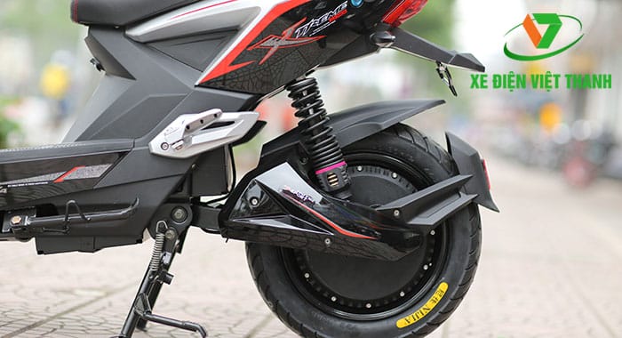 Động cơ xe gắn liền với tâm bánh sau. Hệ thống động cơ mạnh mẽ, với hiệu suất cao đến 25% điện năng thành năng lượng ổn định. Điều này quyết định đến vận tốc tối đa của xe lớn. Ắc quy với lượng điện năng tích lớn, lên đến 60V-20Ah. Quãng đường cho xe chạy là 80km/ 1 lần sạc. Ưu thế của xe từ động cơ, đến phần thiết kế.