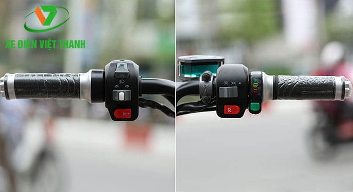 Tay cầm vô cùng hiện đại, mạnh mẽ, thời trang, các nút chức năng lại được bố trí gọn gàng, thuận tiện. Phanh xe chếch xuống một goác 20o đảm bảo tay phanh sử dụng được một cách dễ dàng nhất.